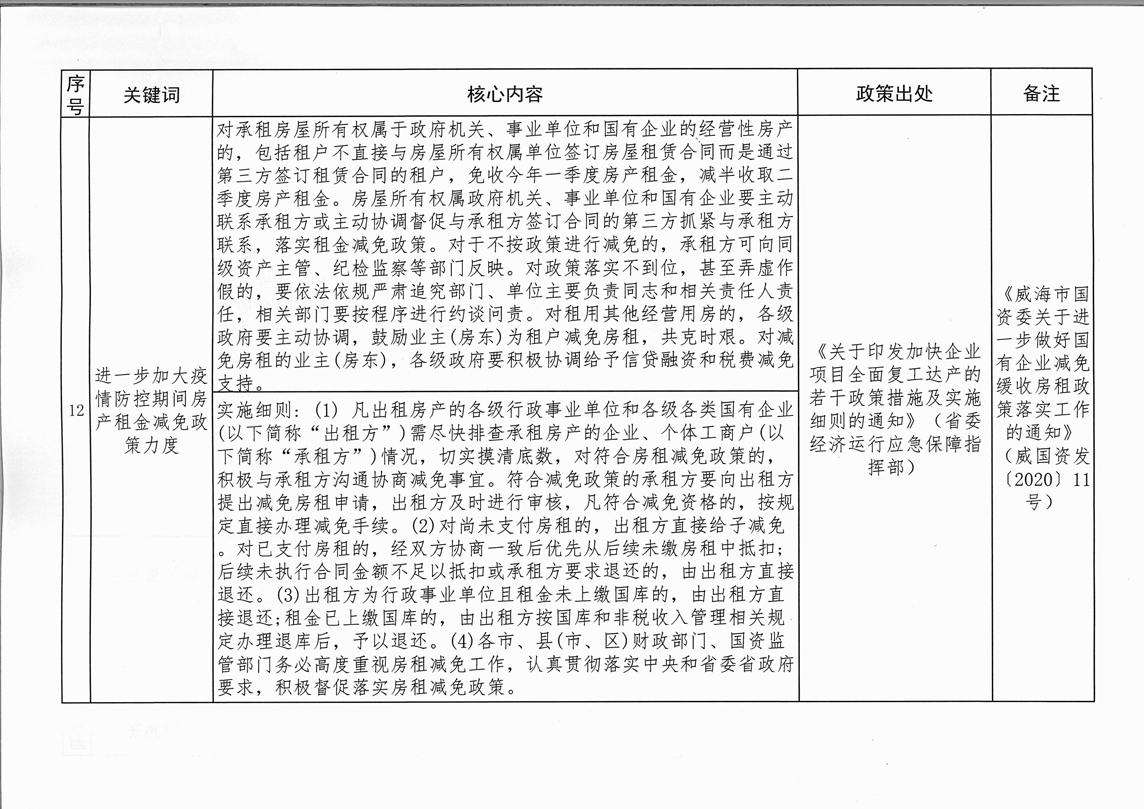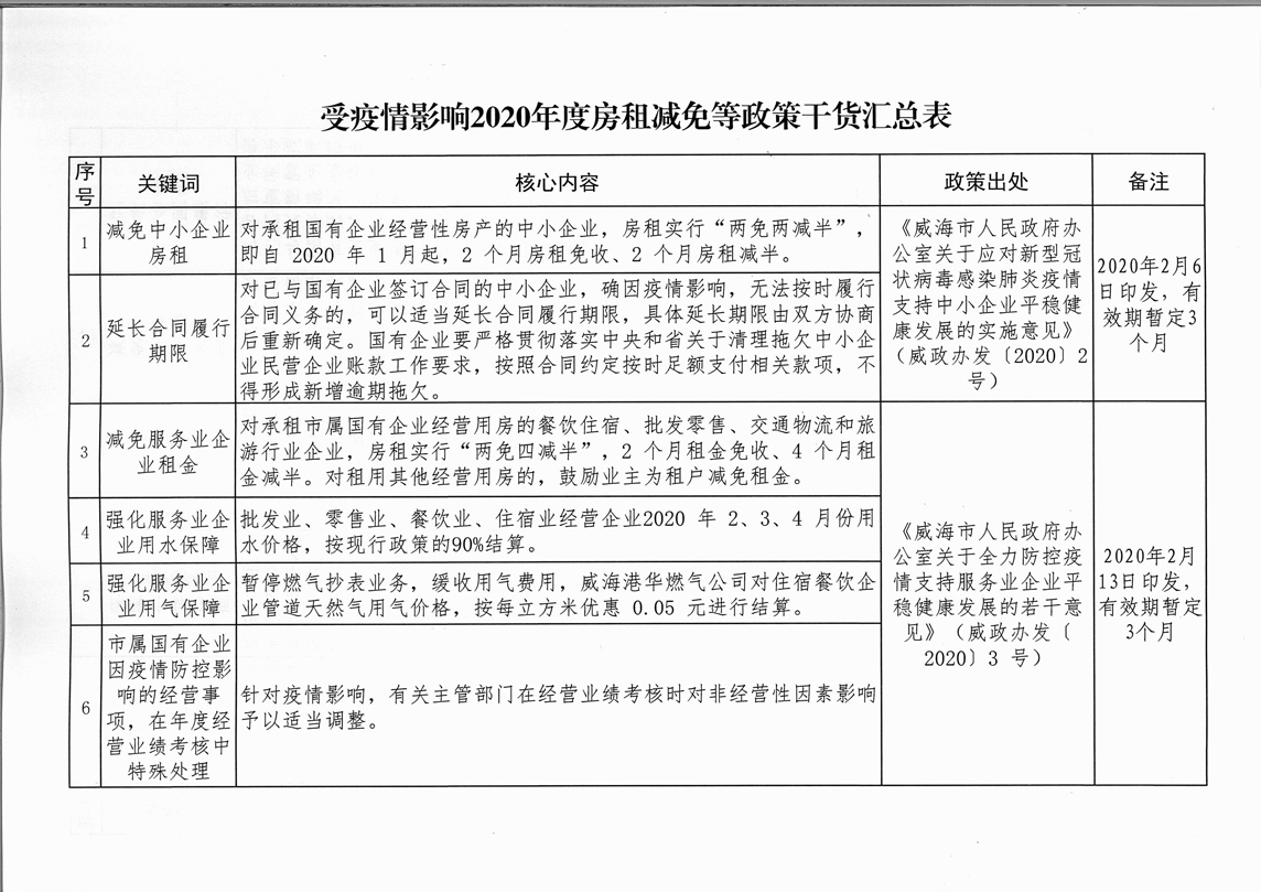 公 告 為全面落實(shí)“六穩(wěn)”、“六保”任務(wù),進(jìn)一步推動(dòng)國(guó)有企業(yè)房租減免政策落地落實(shí),現(xiàn)將《受疫情影響2020年度房租減免等政策干貨匯總表》及監(jiān)督投訴電話予以公告。承租戶如有需要投訴或反映的問(wèn)題,請(qǐng)撥打市國(guó)資委監(jiān)督電話5187518。